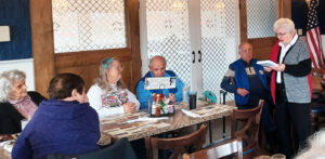 At the conclusion of the Rossi’s presentation, Lynn presented them a Certificate of appreciation, a medalion, and a copy of the “Pioneer Magazine”. We then closed with prayer, visited, and had lunch.