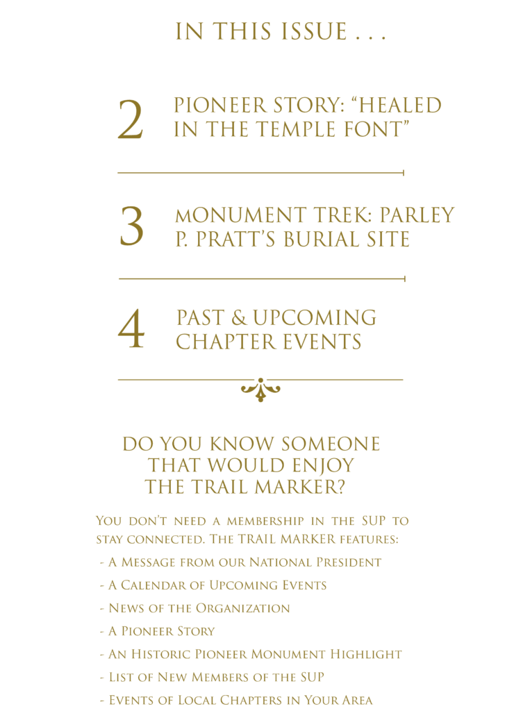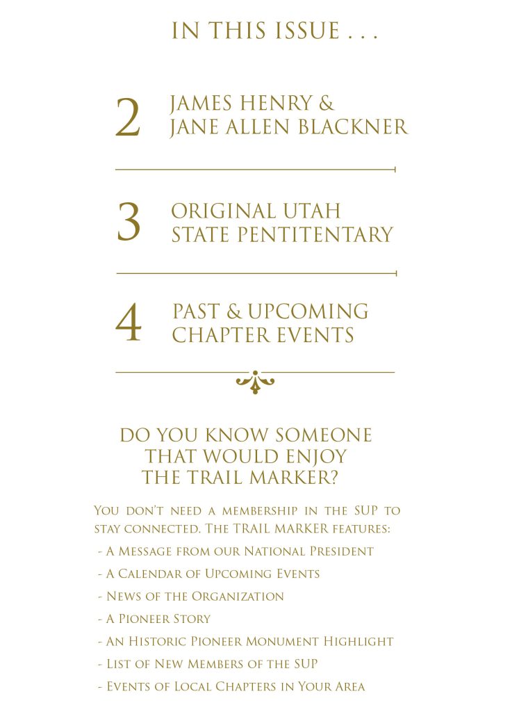 PIONEER Magazine is published four times each year. All Annual, Friends and Family, and Life members of the S.U.P. receive PIONEER as a benefit of membership. Anyone interested in nineteenth-century Utah pioneer and Mormon history is encouraged to subscribe.